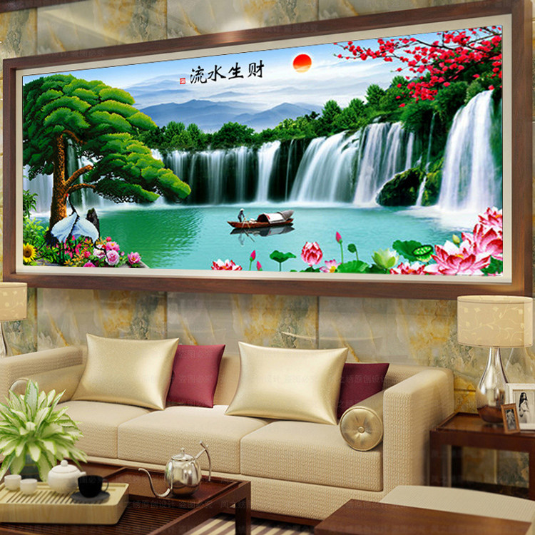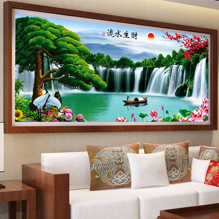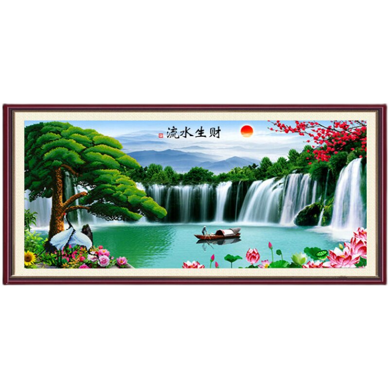 新款流水生财大幅风景满砖钻石画