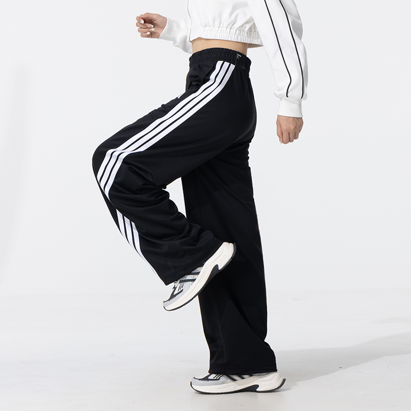 Adidas/阿迪达斯黑色女裤时尚运动裤经典三道杠针织休闲裤直筒裤