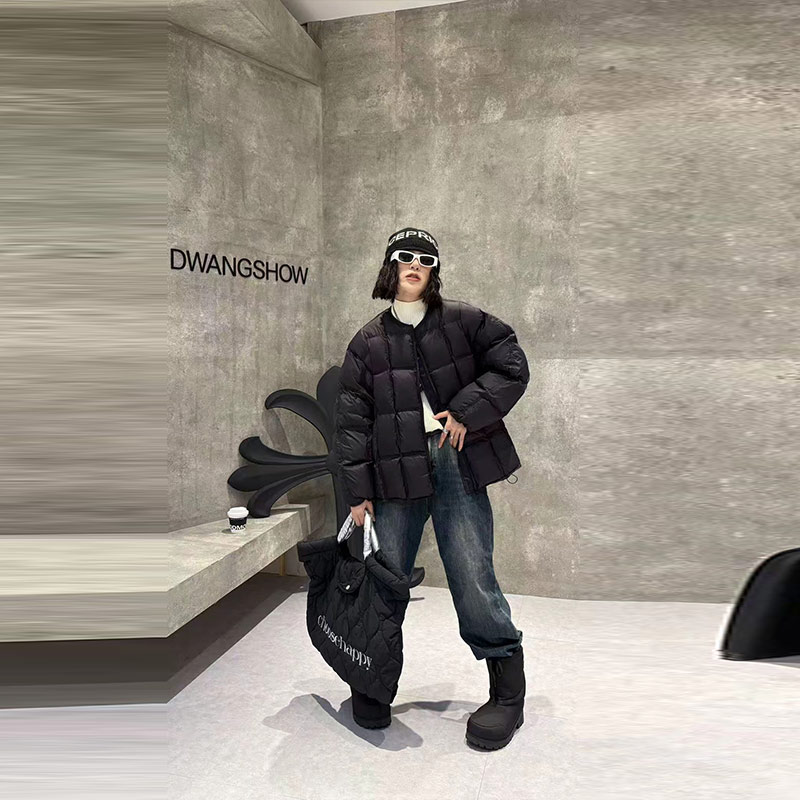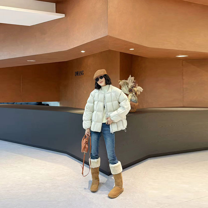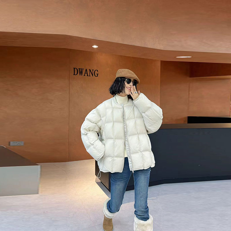 胖妹妹圆领底抽绳长袖棉服外套韩版大码女装纯色简约百搭保暖上衣