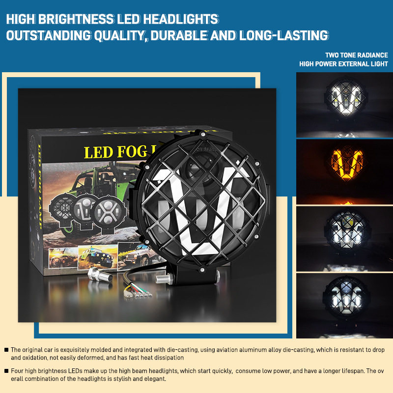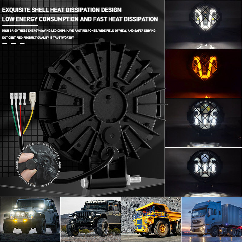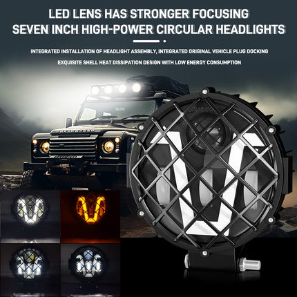 适用于JEEP牧马人7寸圆灯V型带支架 带网led大灯越野车灯射灯改装