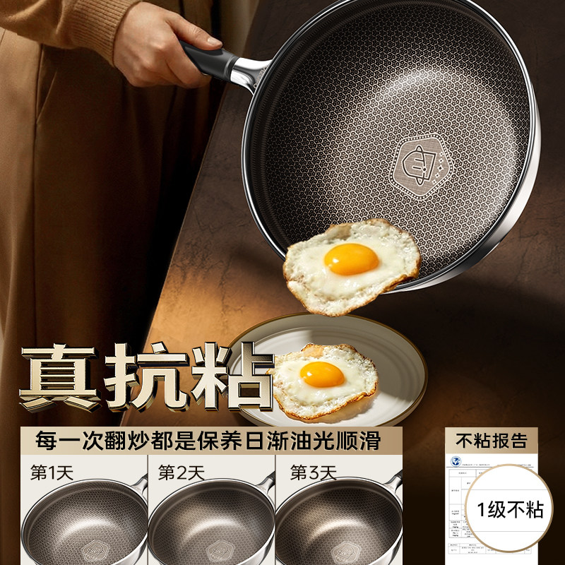 【严选品牌】钛炒锅蜂窝不粘耐用