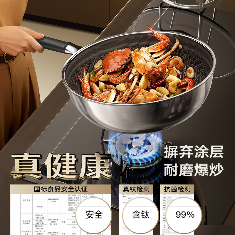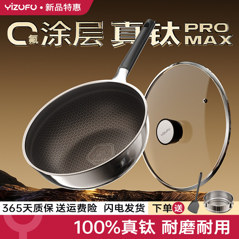 臻钛ProMax无涂层不粘锅炒菜锅家用燃气电磁炉专用平底不锈钢锅h