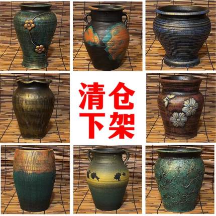 清仓花盆陶罐浮雕花高端绿植盆栽复古侘寂风多肉植物摆件创意大号