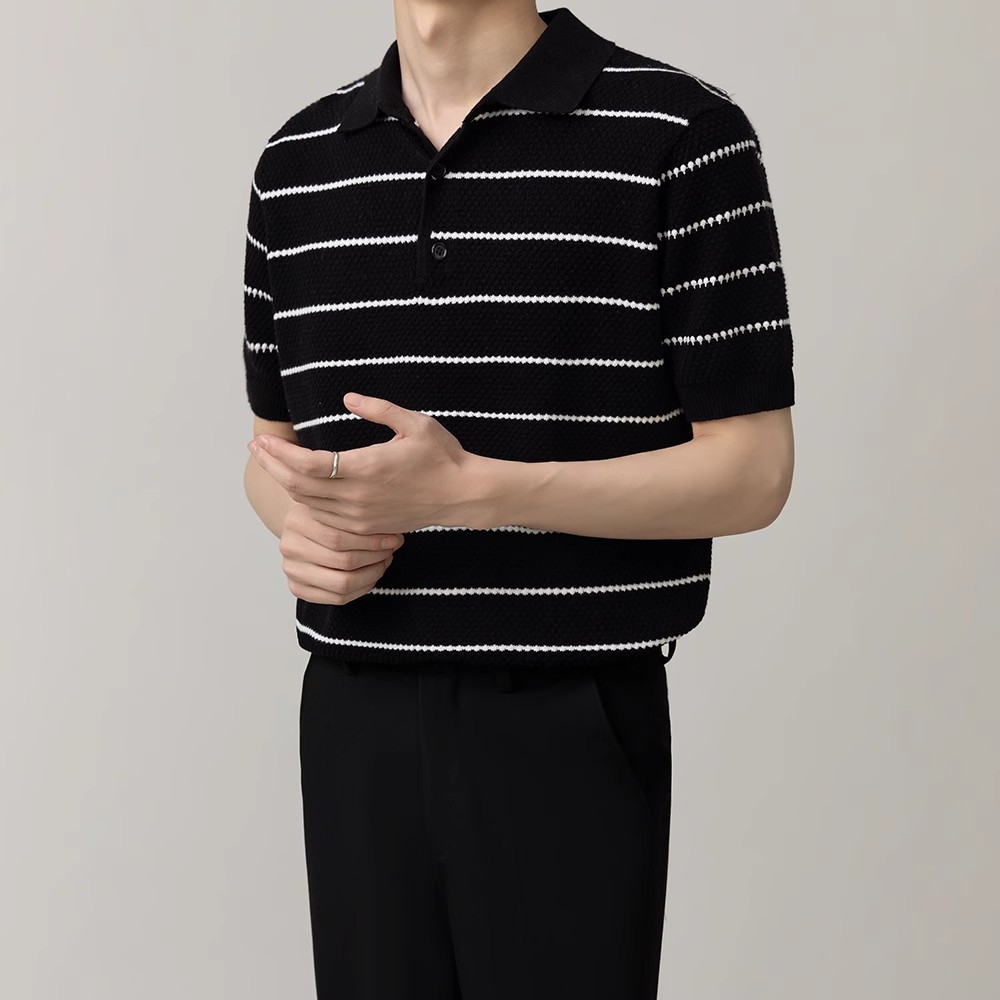 韩国轻熟风夏季新款条纹翻领polo衫男韩版轻熟商务休闲短袖t恤潮