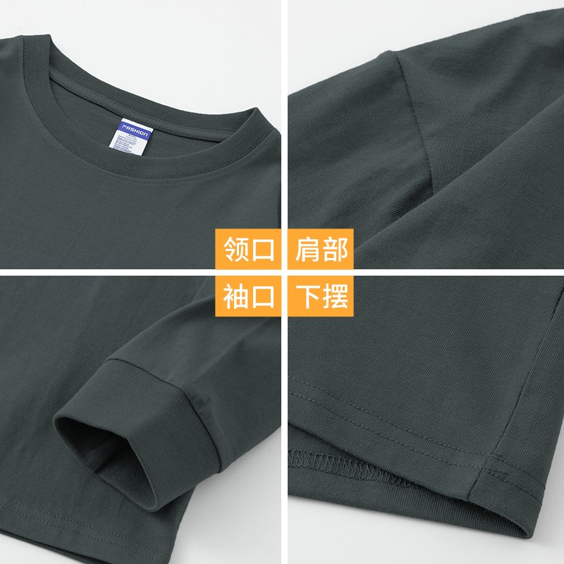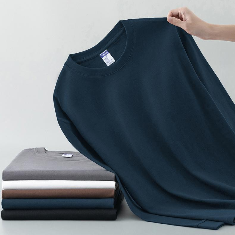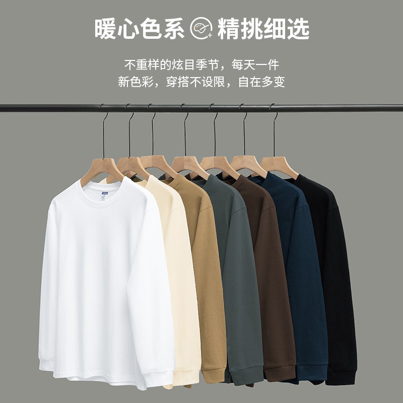 400g美式重磅纯棉长袖t恤男女秋冬内搭打底圆领宽松百搭纯色上衣