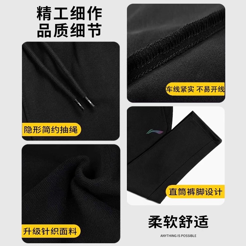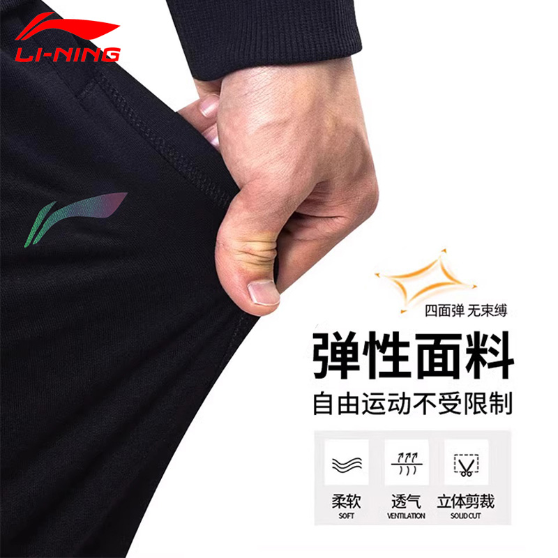 李宁运动裤男士直筒长裤2025春秋新款夏季速干黑色卫裤梭织裤子