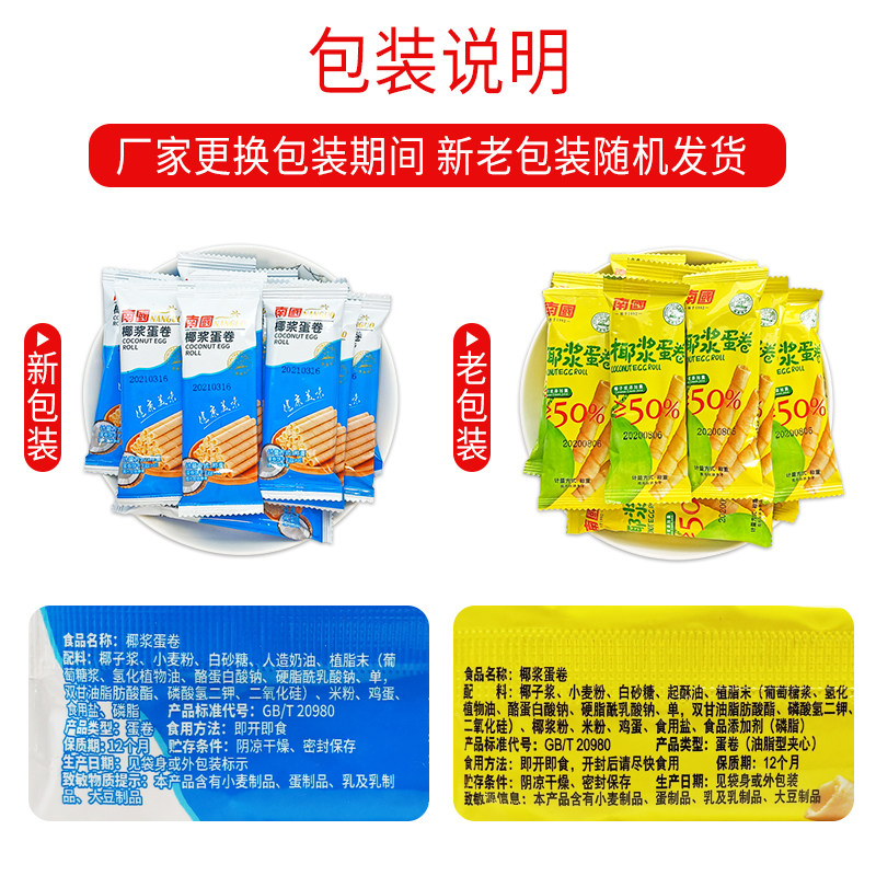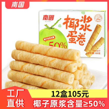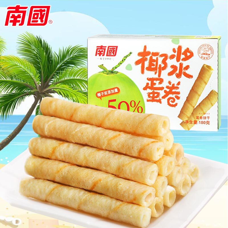 海南特产 南国食品 椰浆蛋卷180g 椰子饼干酥脆椰奶椰香酥卷