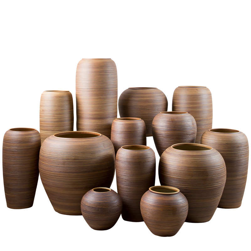复古陶罐落地大花瓶户外摆件中式客厅酒店装饰品插花干花粗陶瓷瓶