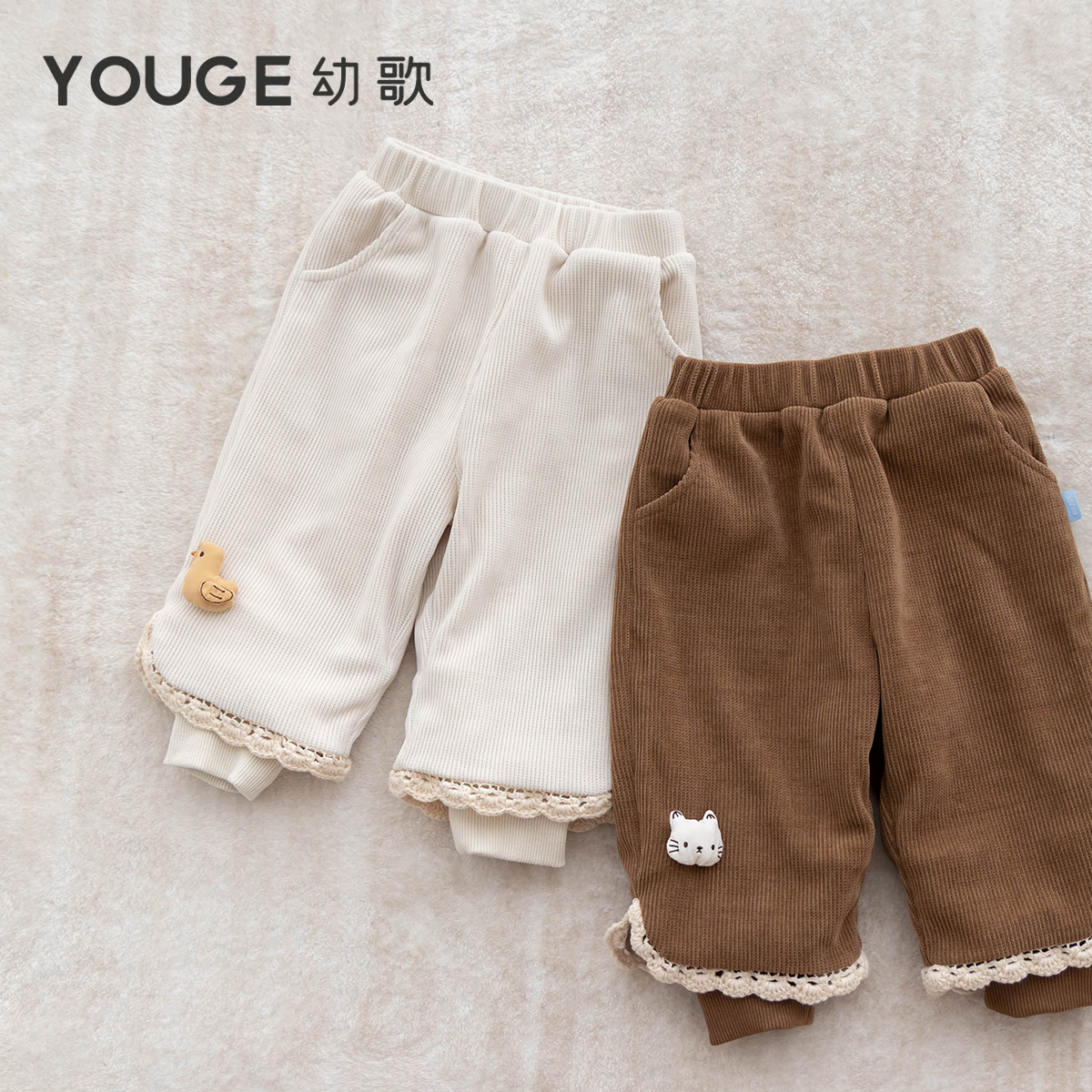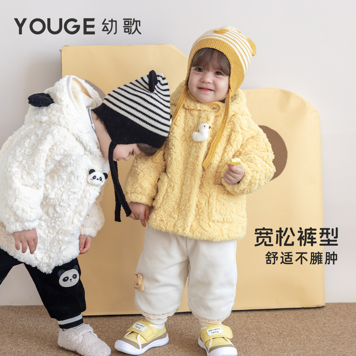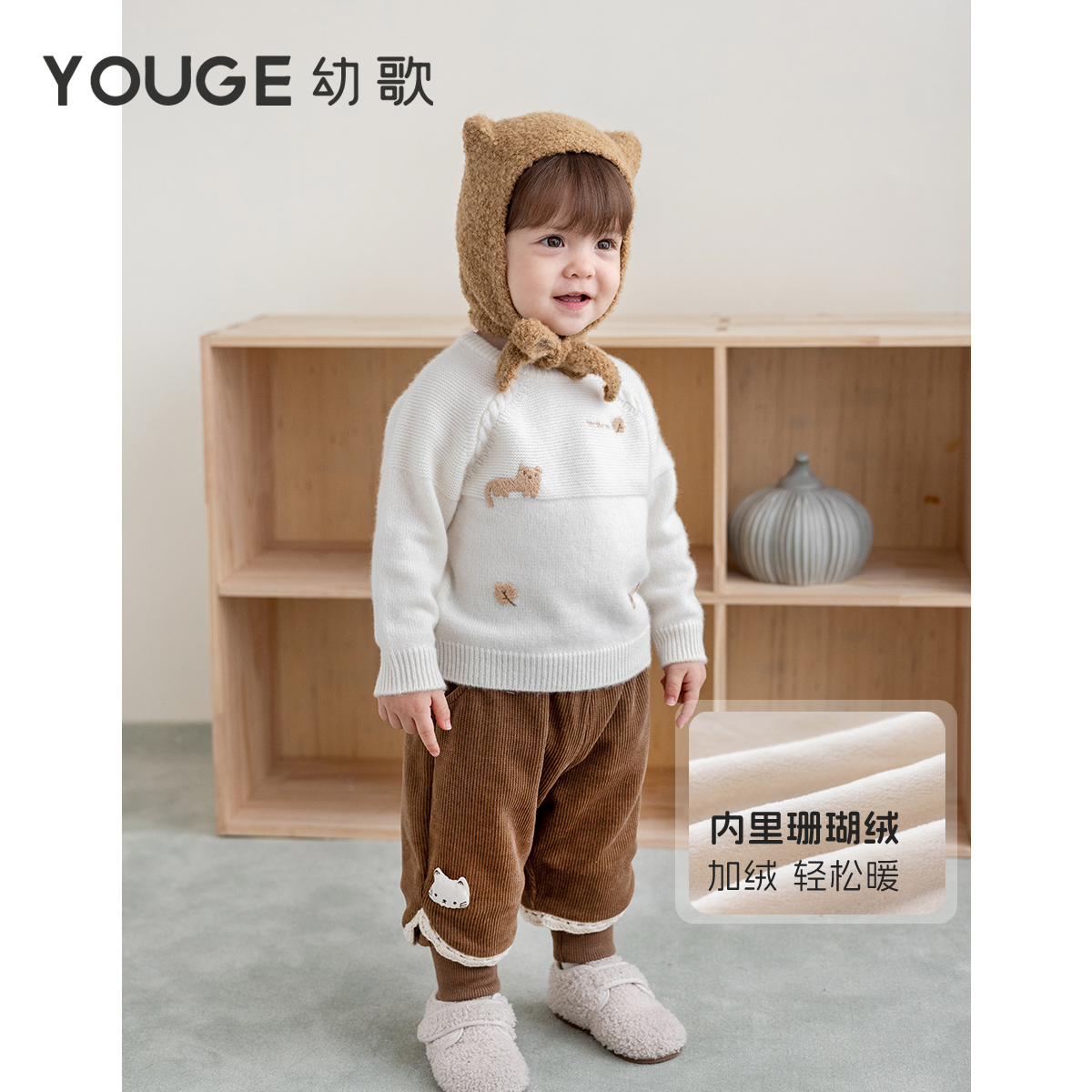 YOUGE幼歌 婴幼儿冬季新款保暖加绒宽松束脚裤宝宝柔软假两件长裤