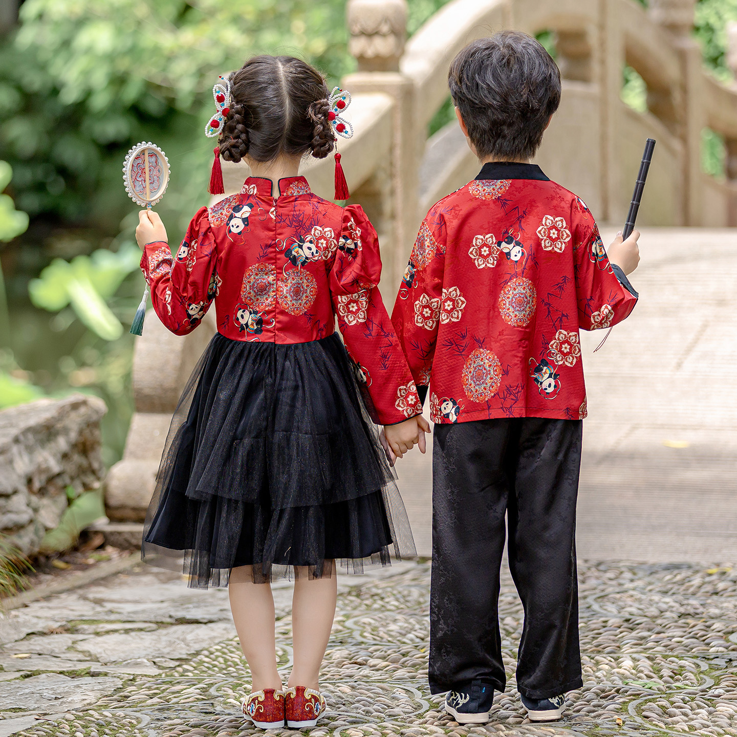 男女儿童中国风演出服新款中式唐装春秋喜庆纱裙演讲合唱表演汉服