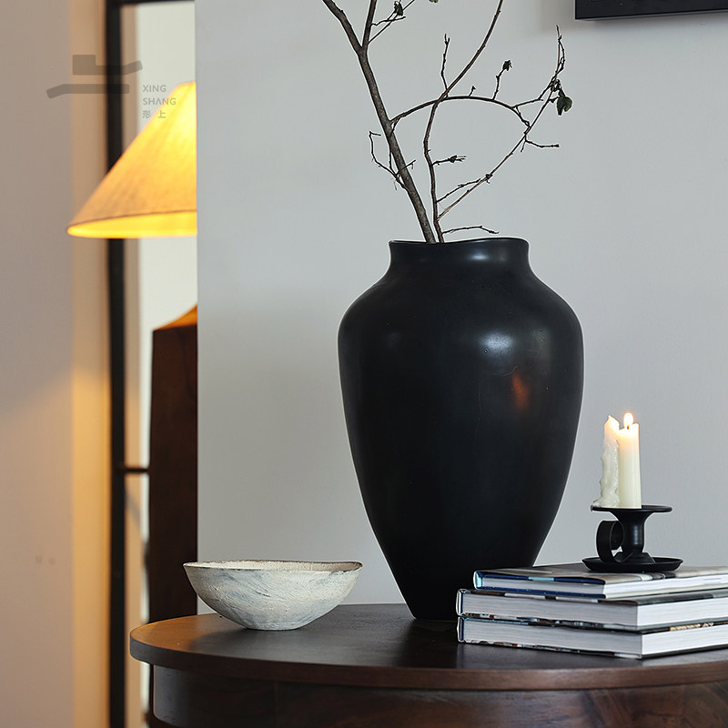 形上法式中古南洋风陶瓷花瓶家居装饰品玄关水培黑白复古花器摆件