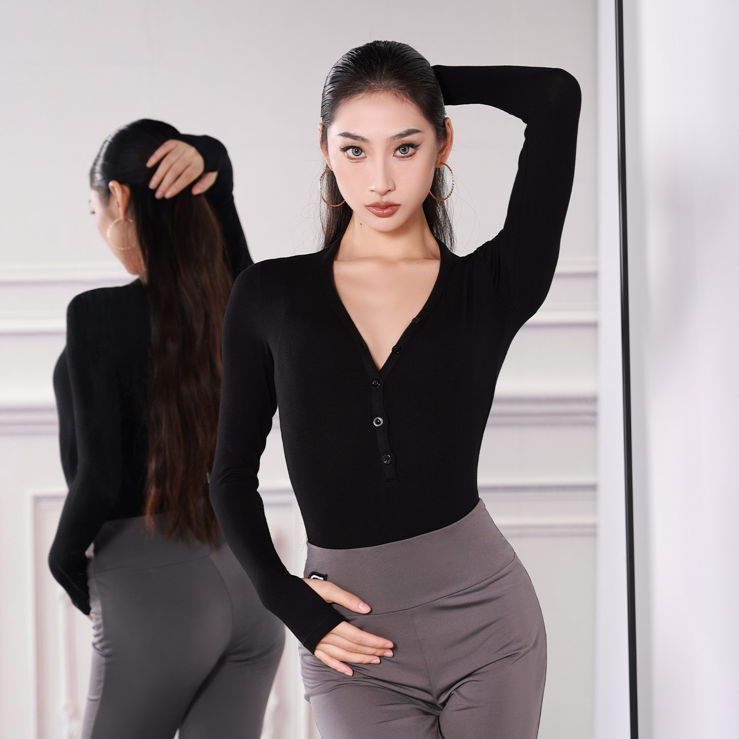 dancebaby拉丁舞衣服女舞蹈服练功服上衣新款形体跳舞服长袖YS424