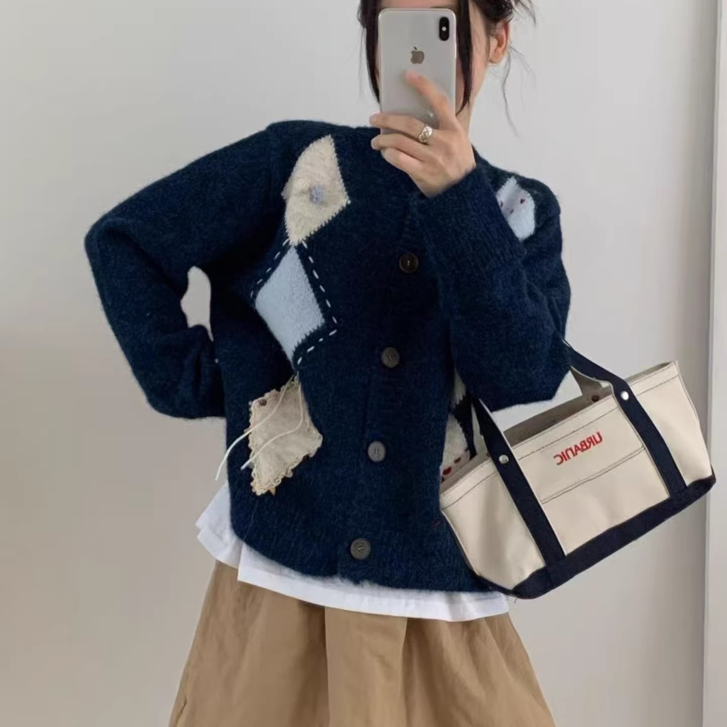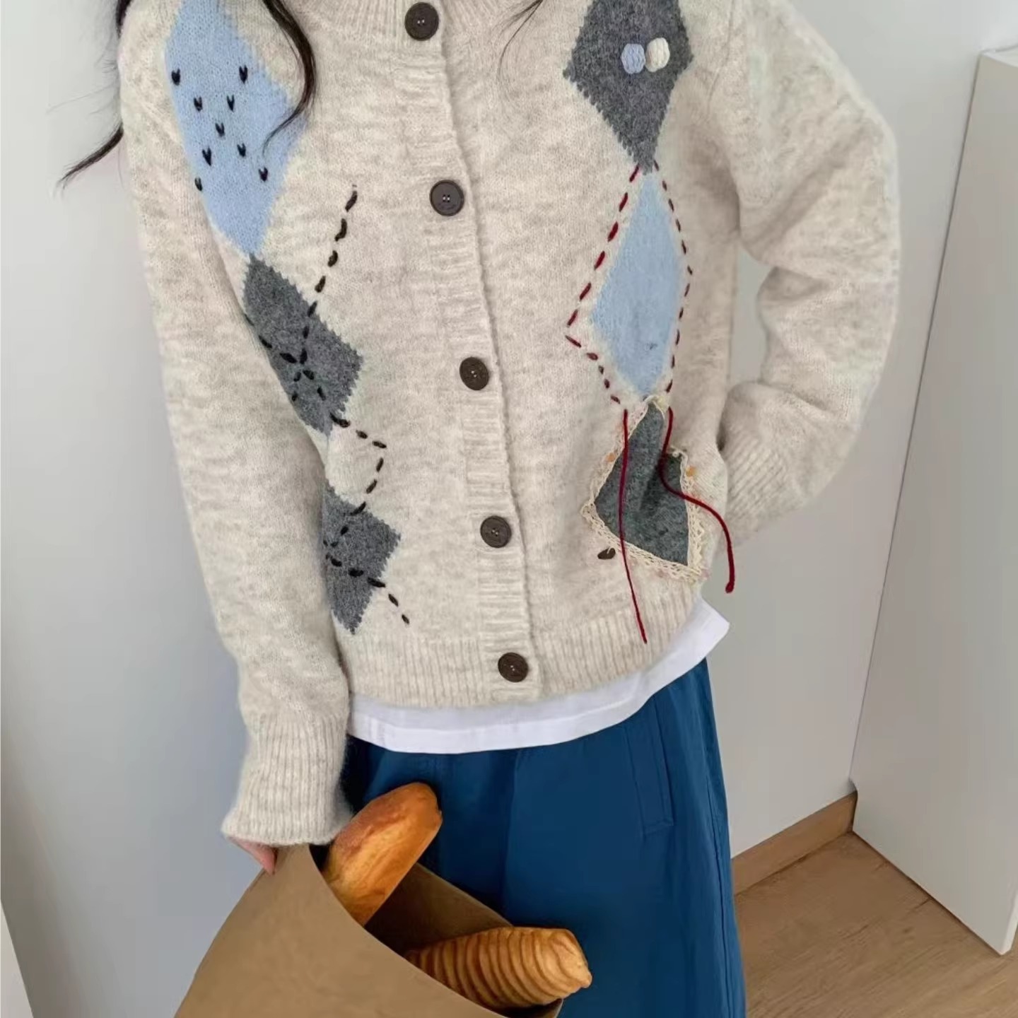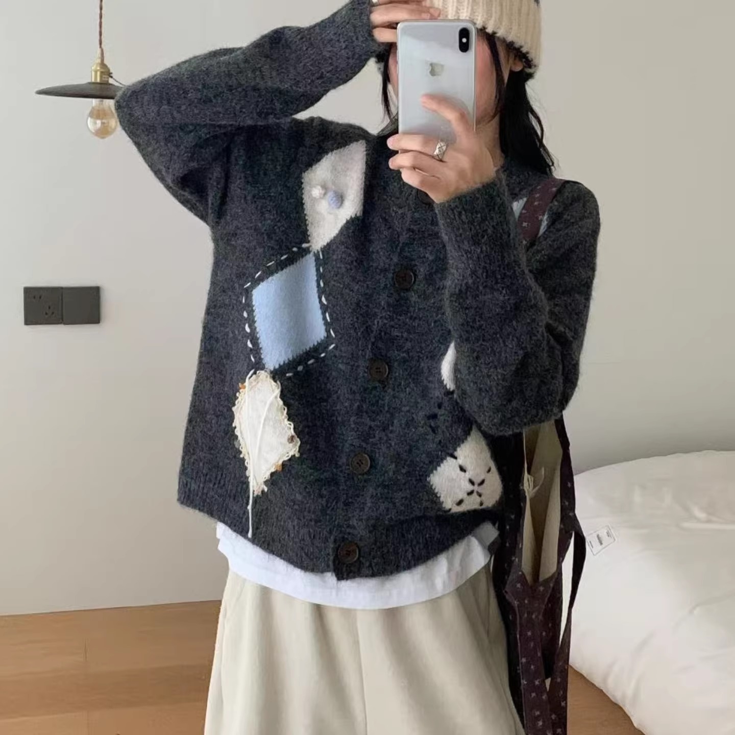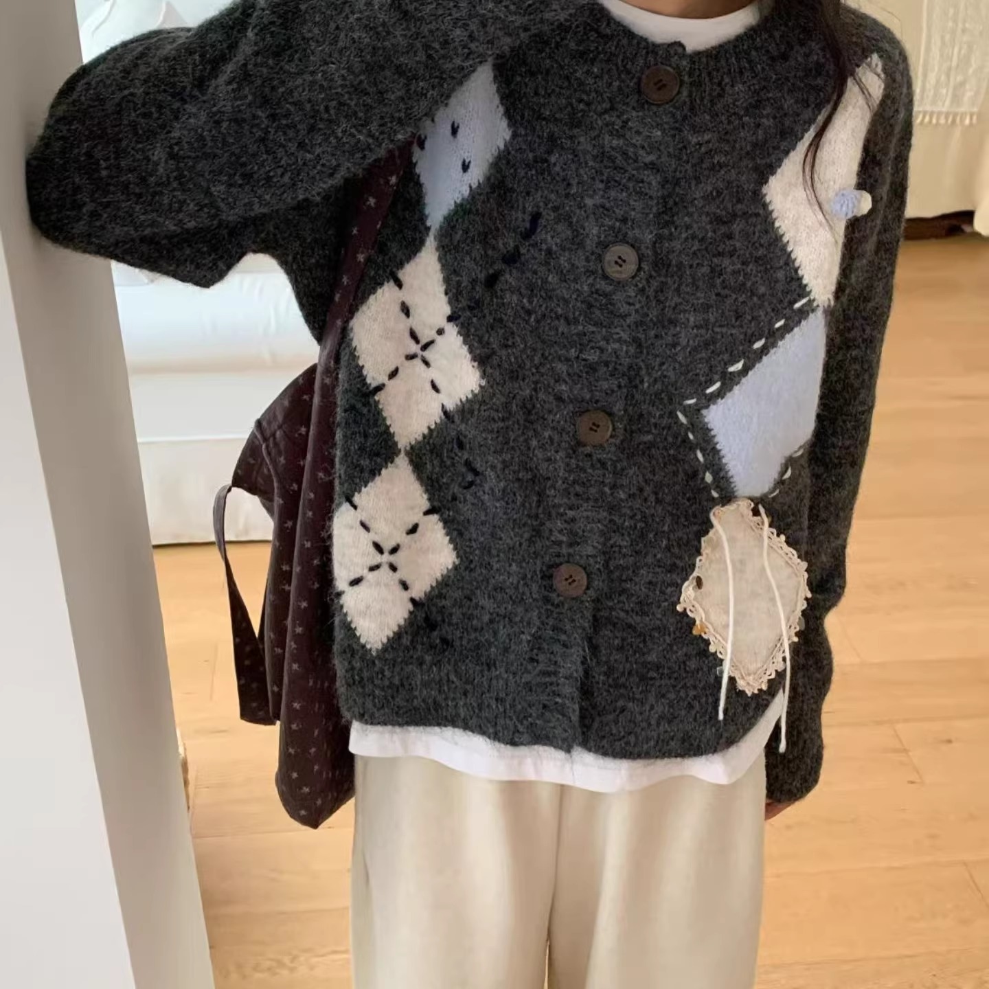 菱形格针织开衫女秋冬2025新款