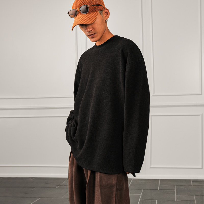 JUPSTUDIO日系纯色廓形长袖t恤男