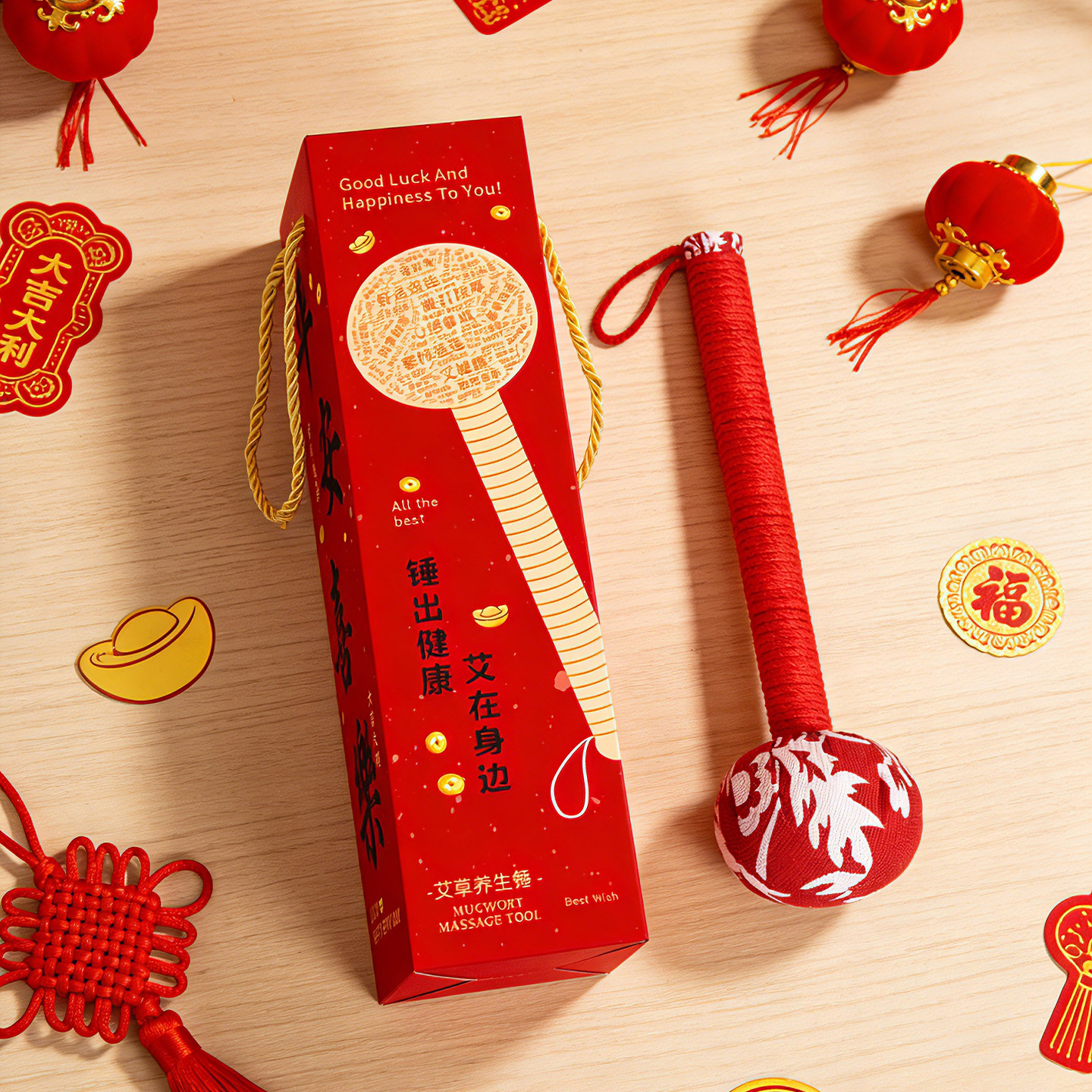 艾草按摩养生锤经络敲打锤事事如意艾灸锤亚麻锤背伴手礼新年礼物