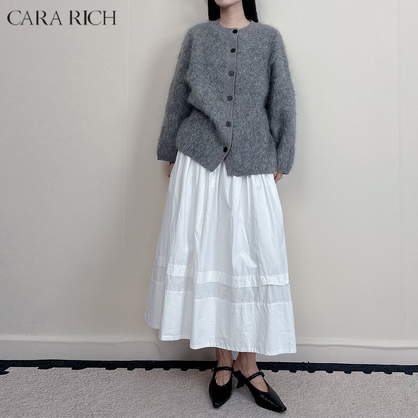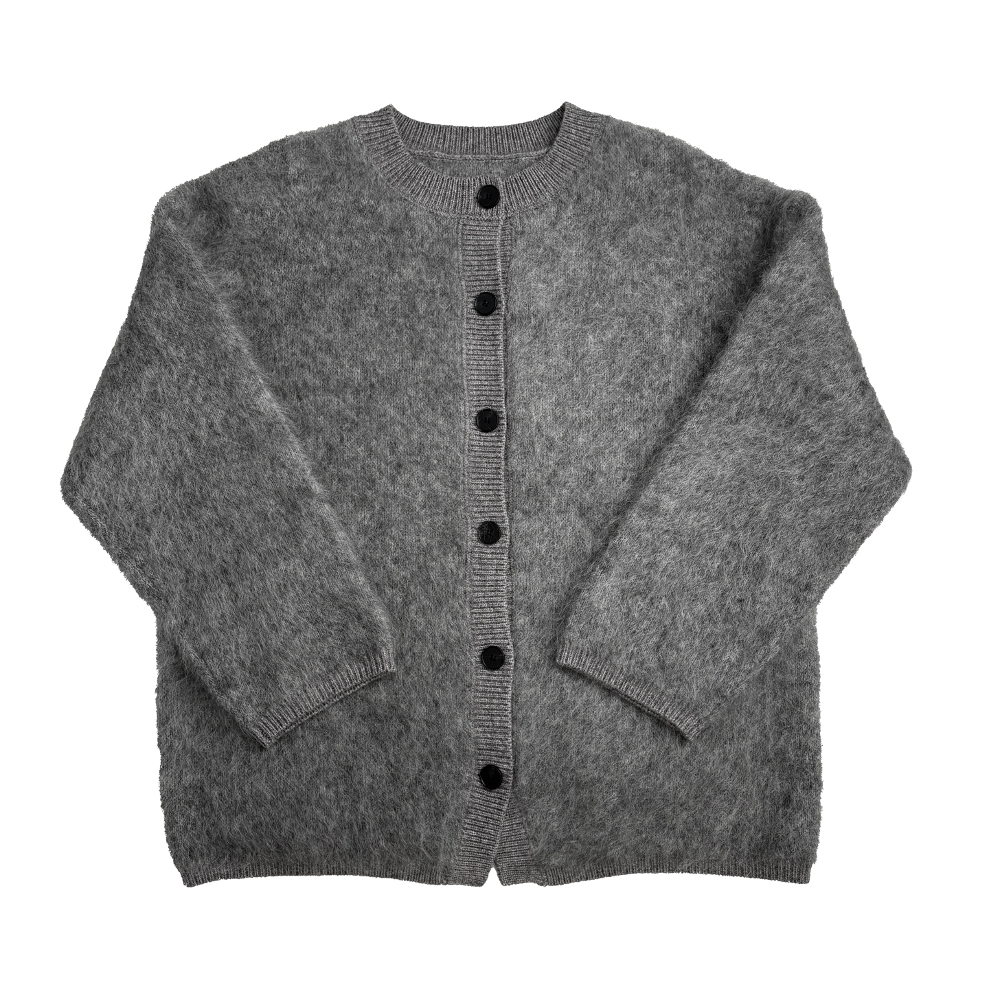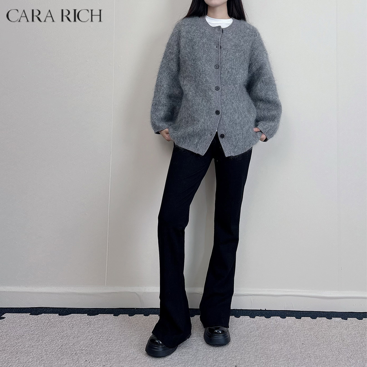 灰色马海毛针织开衫2025秋冬新款时尚气质百搭圆领长袖针织衫
