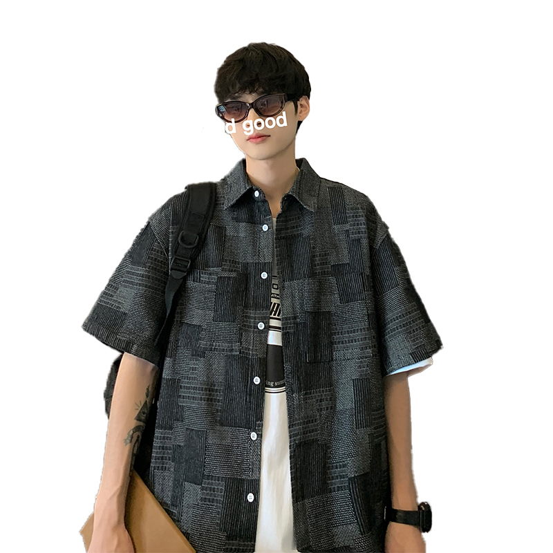wassup happy牛仔短袖衬衫男生夏季薄款潮流工装外套高级感衬衣服