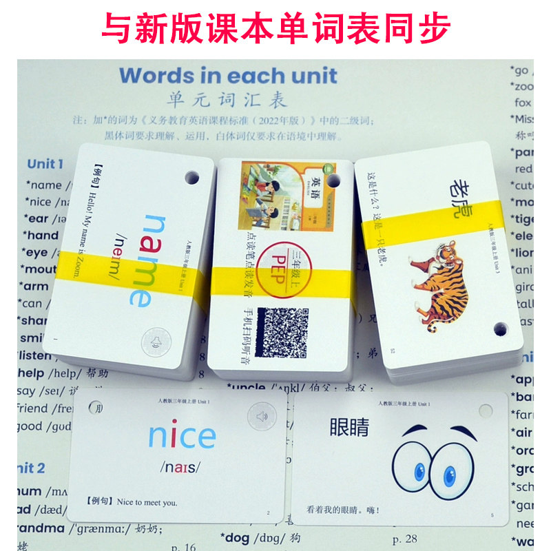 2026人教PEP三年级起点小学生教材单词卡闪点读牛书童小蝌蚪达人