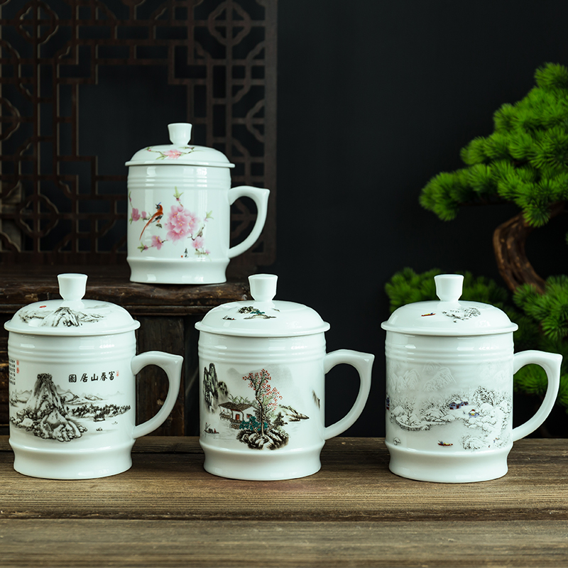 1000ml大容量会议陶瓷带盖马克杯中式桌面大号家用办公大茶缸水杯