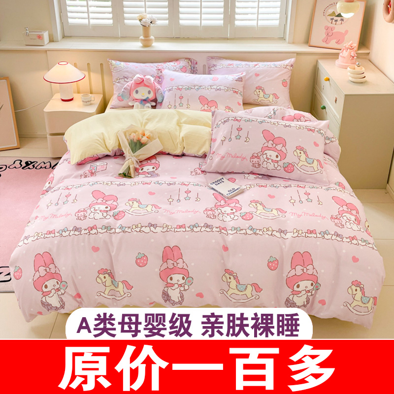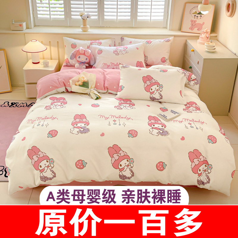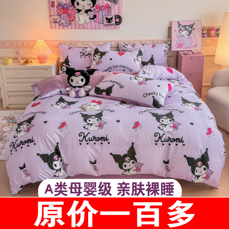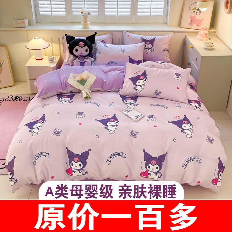 库洛米纯棉床上四件套儿童女孩床品全棉被套宿舍床单三件套床笠