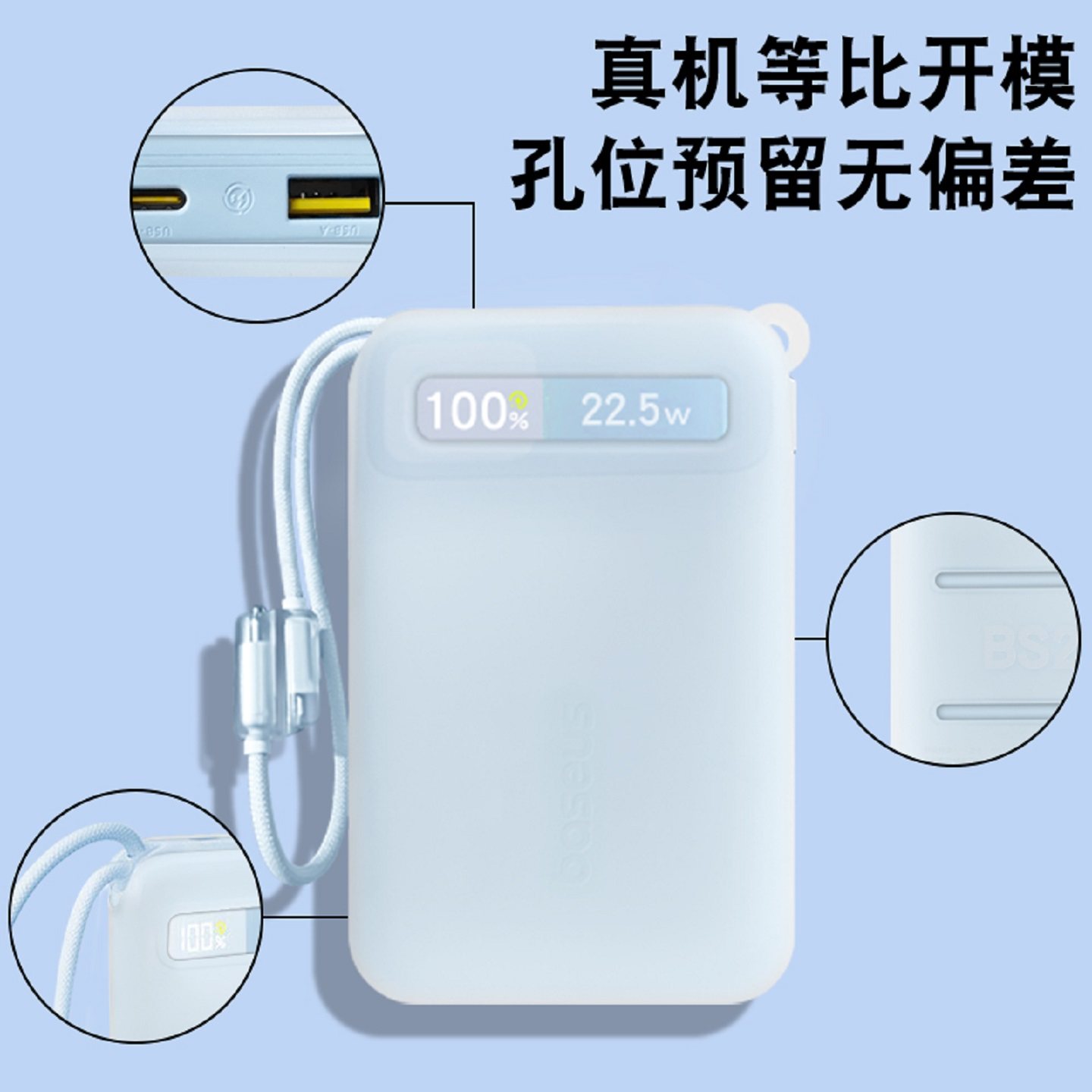 适用倍思2025新款FC11双线充电宝保护套20000/10000毫安大容量自带线硅胶套20W/22.5W移动电源防摔防划配件