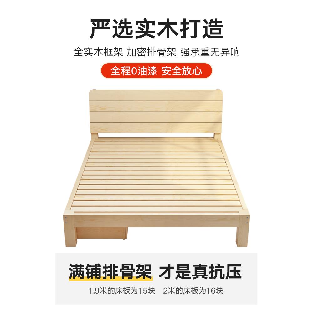 简易实木床1.8米现代简约松木双人床经济型1.5米出租房1.2m单人床