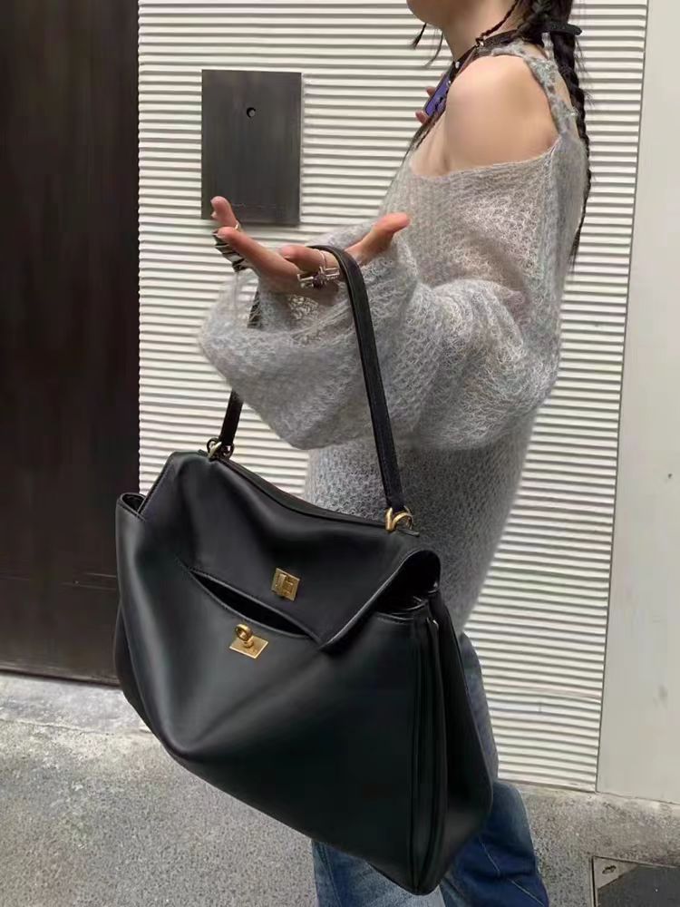 新款B家松弛感ro*deo包头层牛皮单肩大容量手提女包凯莉腋下包