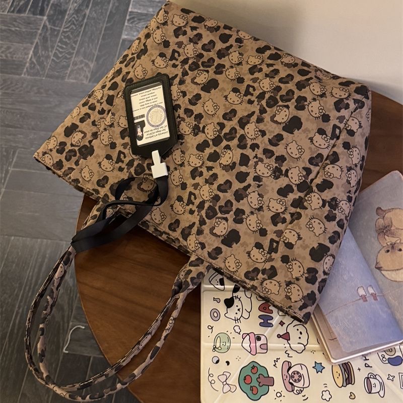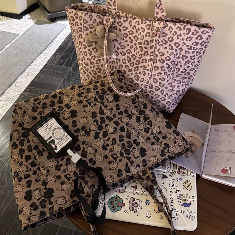 粉色豹纹帆布单肩包2025新款大容量通勤百搭时尚托特包手提购物袋