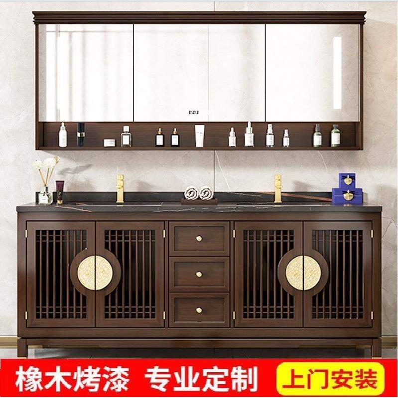新中式橡木浴室柜组合胡桃色落地式卫生间洗手洗脸台盆柜一体式