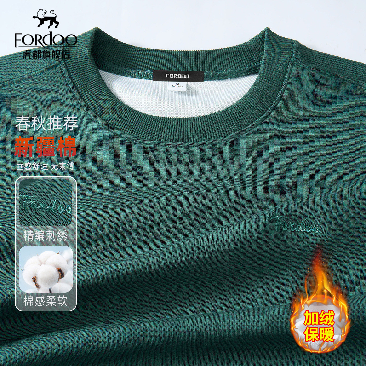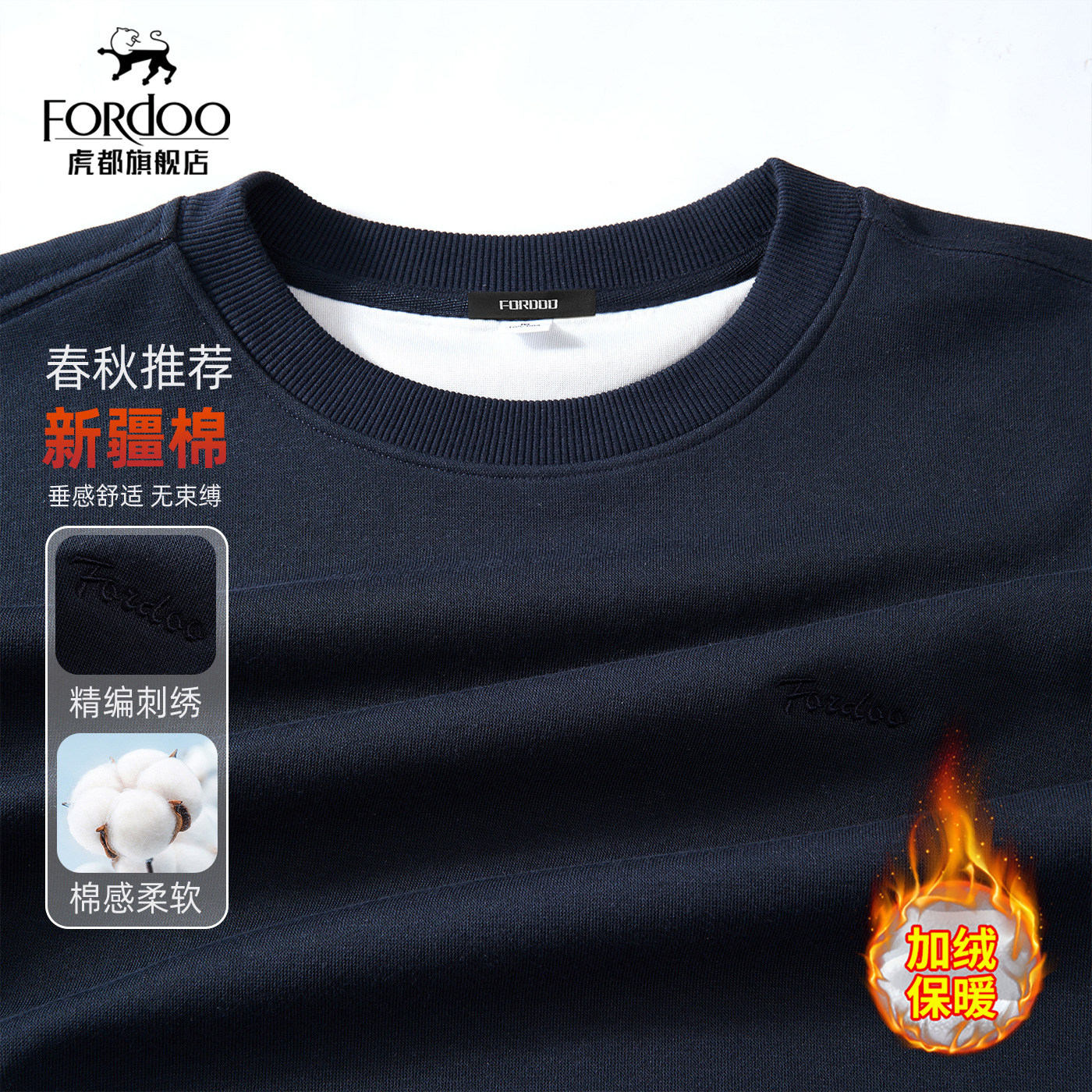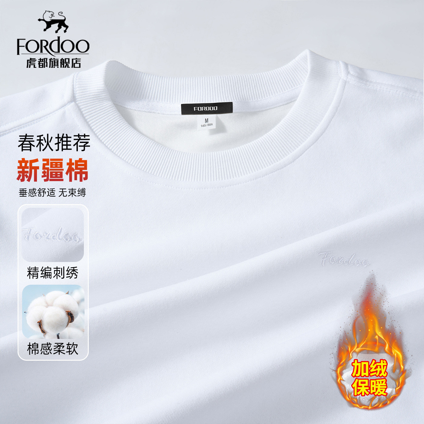 【新疆长绒棉&垂感顺滑】虎都圆领男士卫衣春秋纯色简约宽松卫衣