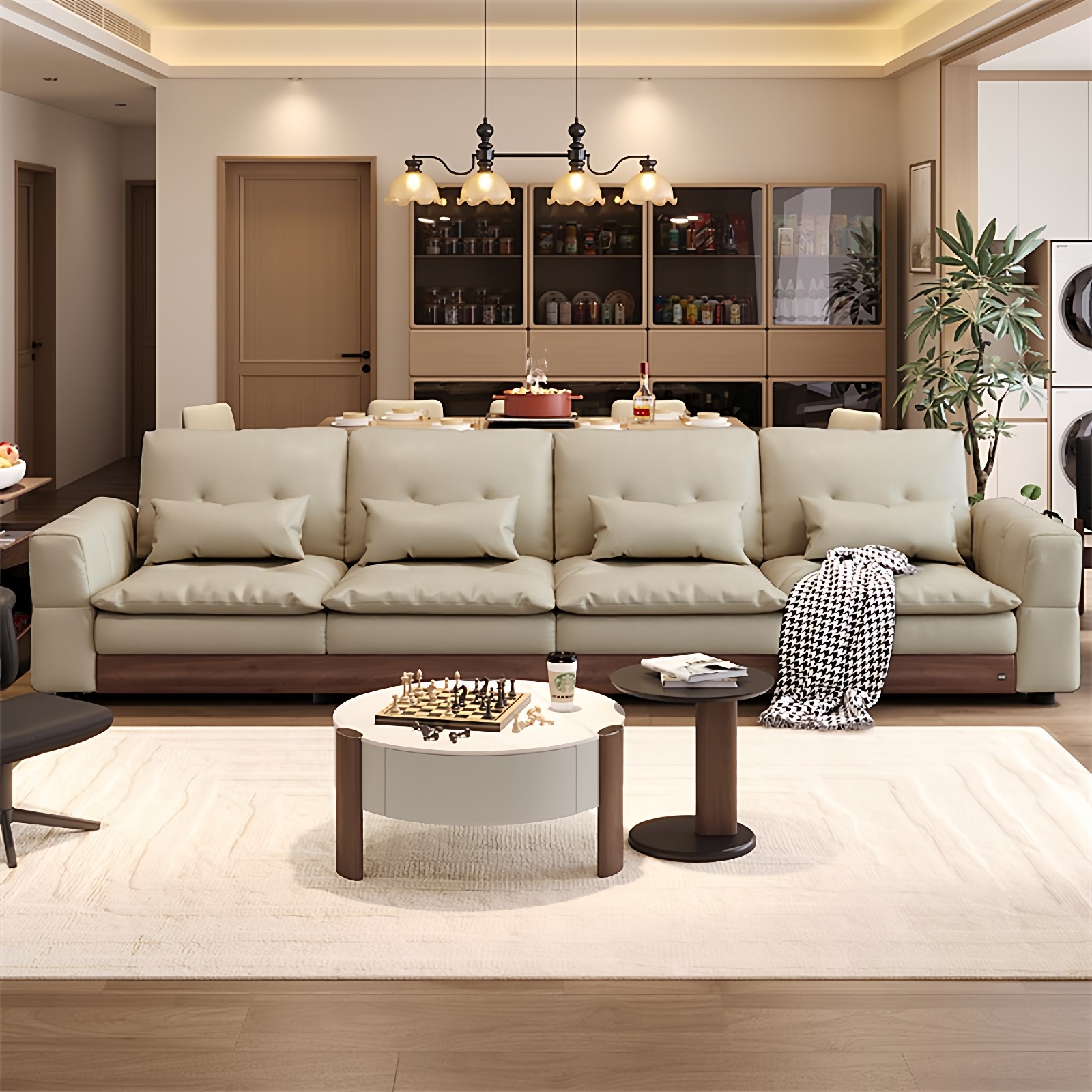 顾家家居实木白蜡木客厅直排沙发