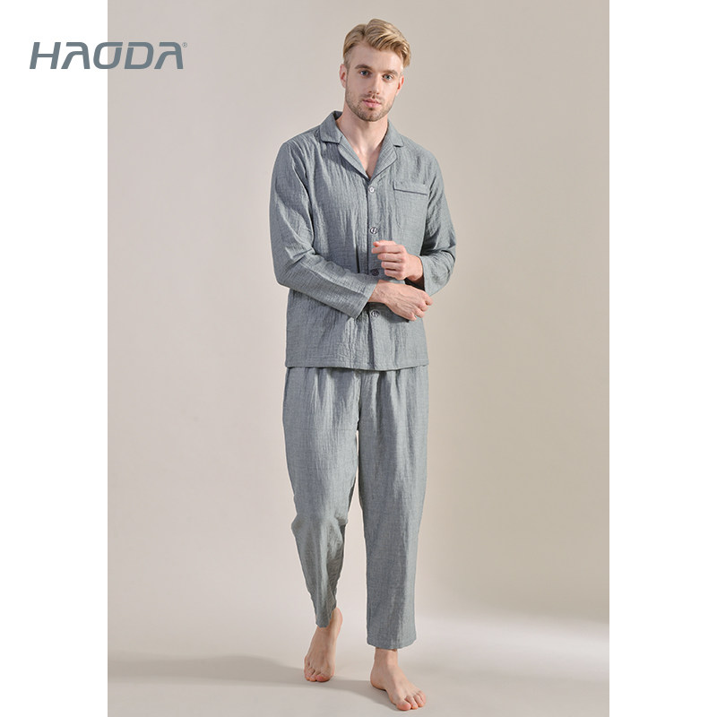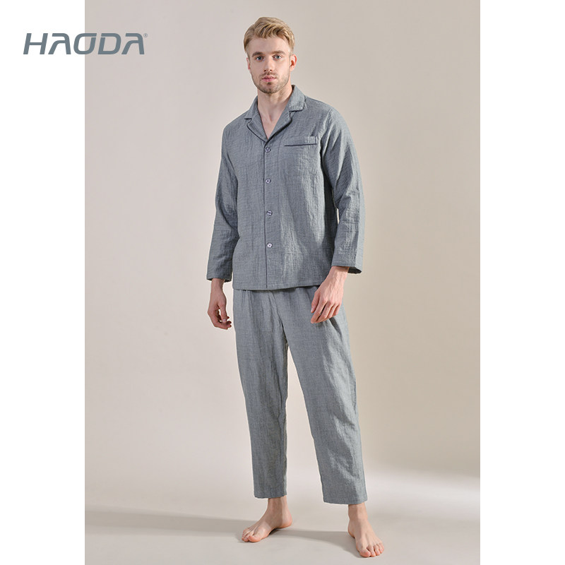 【裸感】昊达男睡衣春夏纯棉家居服女纯色可外穿中年简约透气棉纱