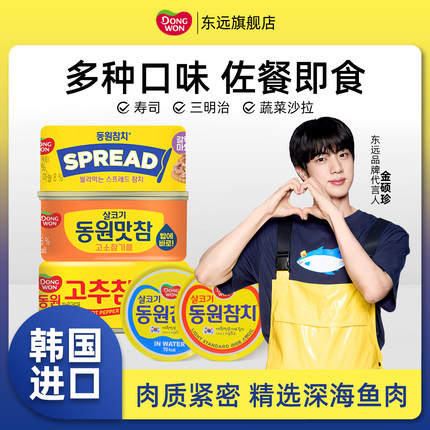 韩国进口东远金枪鱼罐头寿司三明治拌饭即食海鲜油浸水浸吞拿鱼肉
