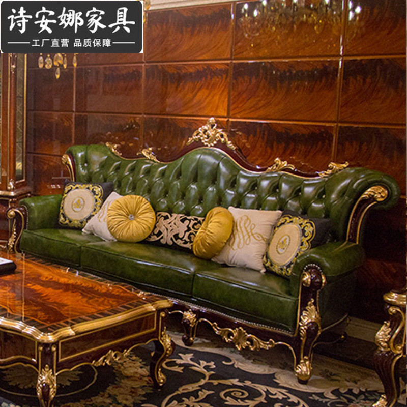 热销欧式新古典沙发大户型奢华皮艺可拆洗123组合客厅整装实木家