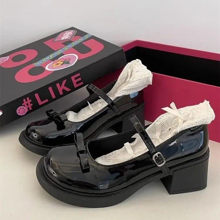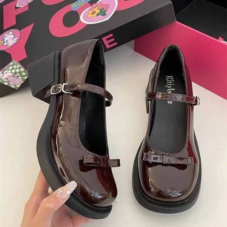 法式蝴蝶结玛丽珍小皮鞋女2025春季时尚百搭小皮鞋配裙子浅口单鞋