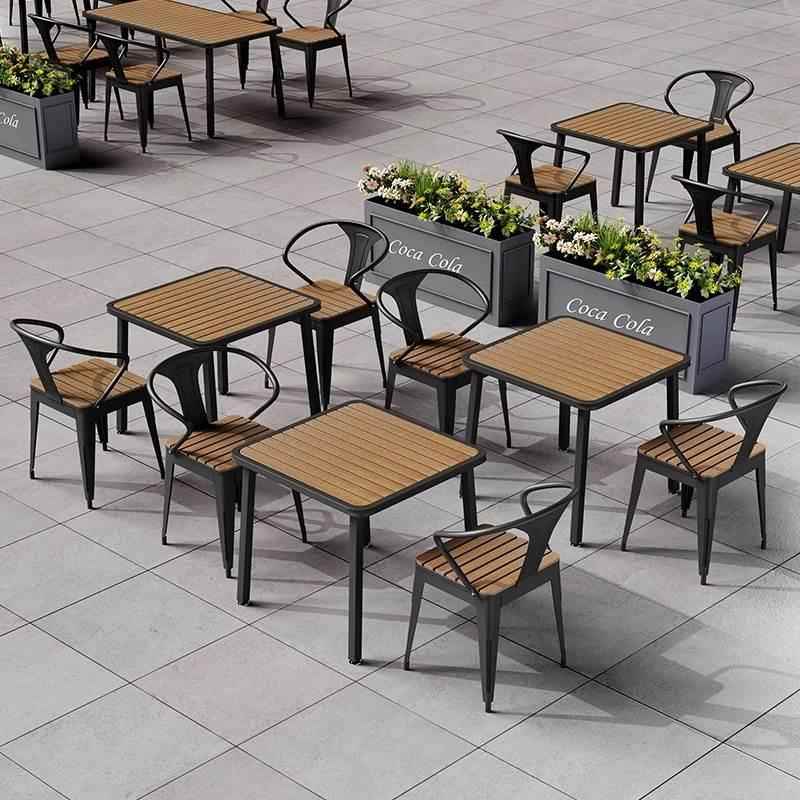 户外塑木桌椅组合花园公园防腐木桌椅景区奶茶店室外防雨防晒桌椅