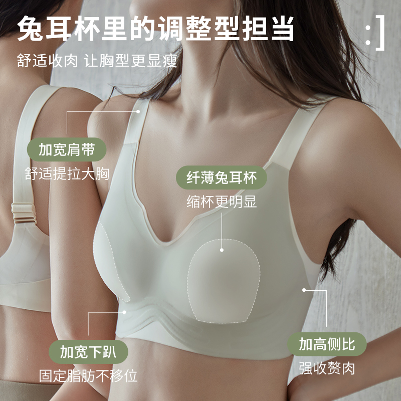 安娜蜜语大码无痕内衣女超薄大胸显小无钢圈薄款文胸收副乳防下垂