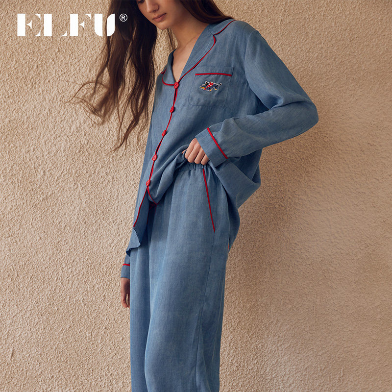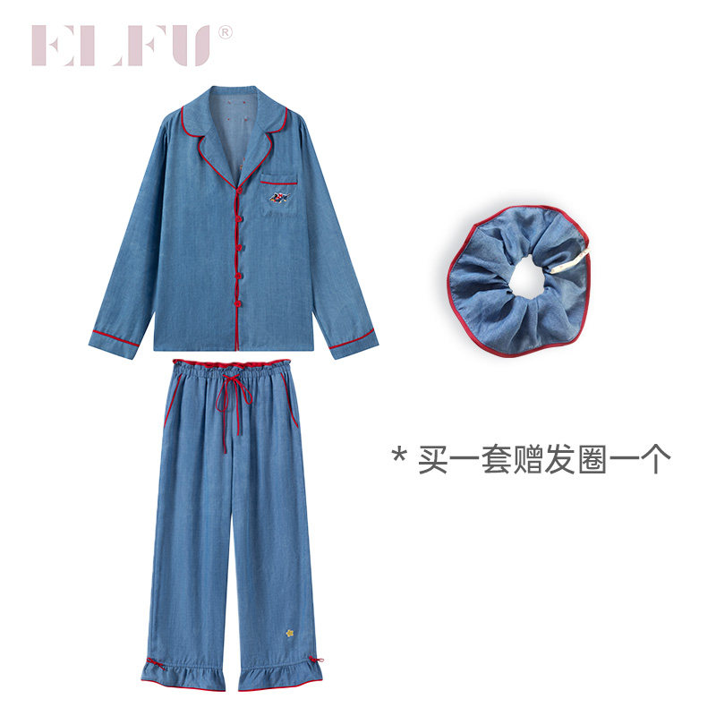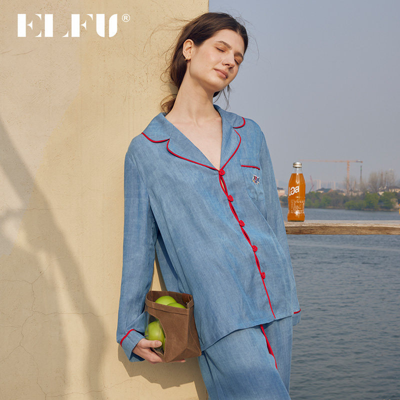 ELFU原创尼斯闲庭天丝牛仔春夏家居服女套装