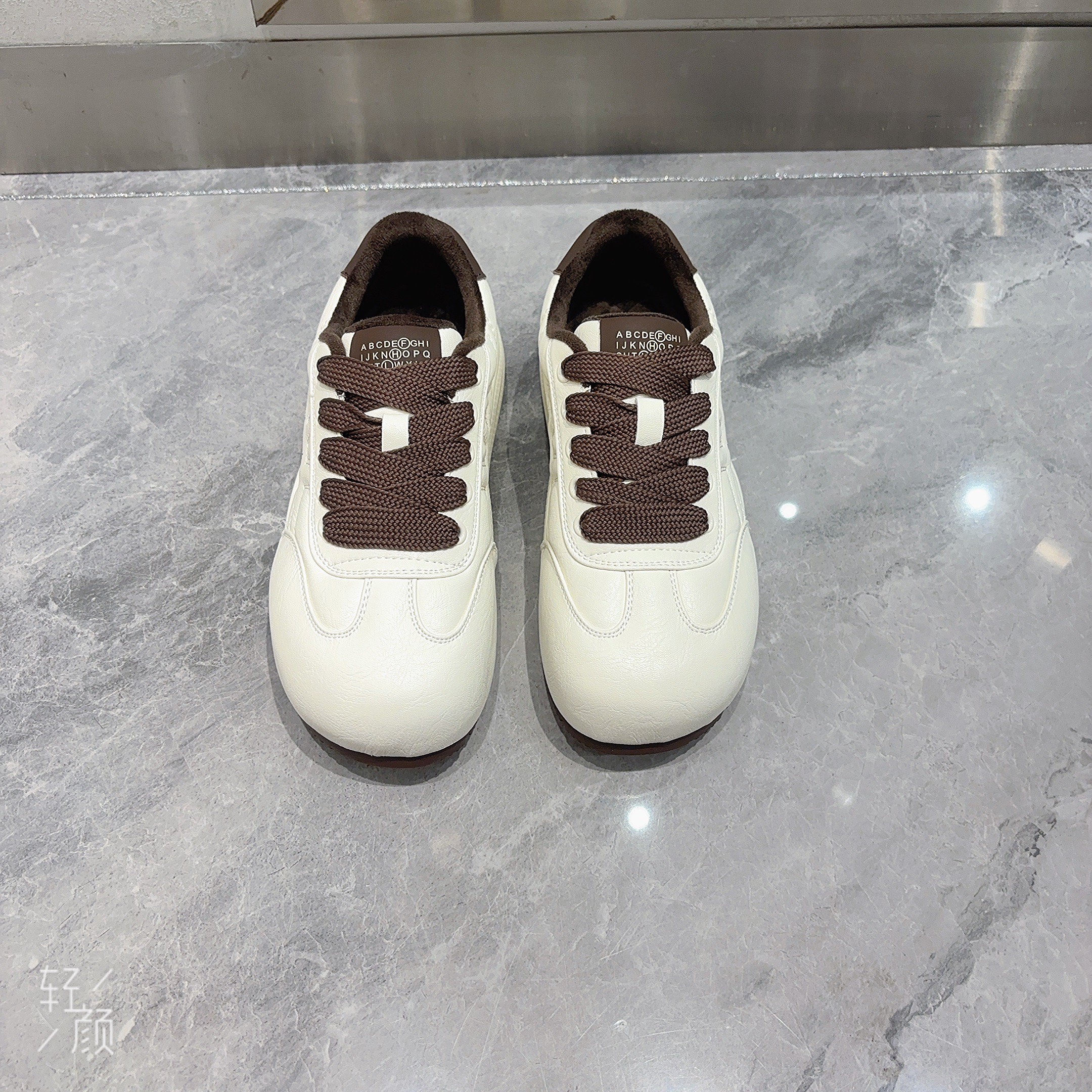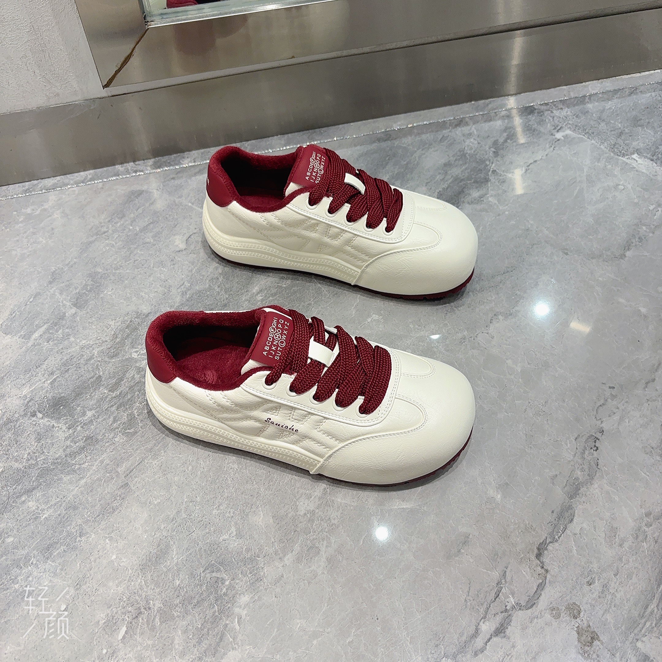 真皮加绒小白鞋女2025冬季新款圆头厚底系带保暖牛皮休闲运动板鞋