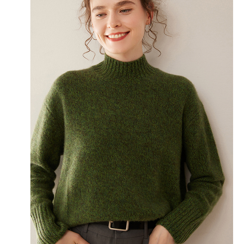 三股花纱厚款山羊绒针织打底衫女长袖半高领韩版套头毛衣百搭上衣