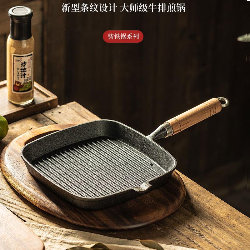 无涂层铸铁锅牛排锅煎牛排专用锅套装平底锅家用牛扒煎锅铁板煎盘