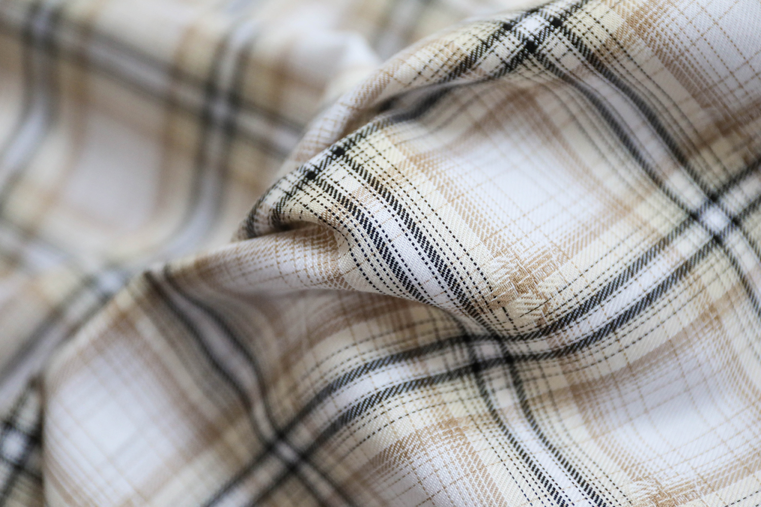日本进口薄款复古米白驼黑色格纹暗纹提花斜纹编织棉麻设计师布料