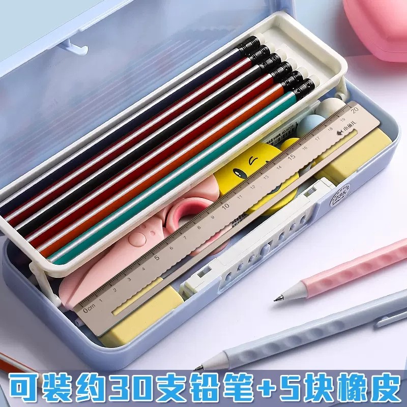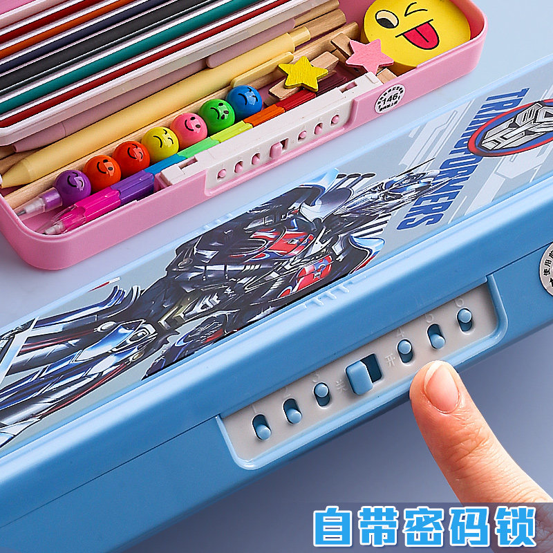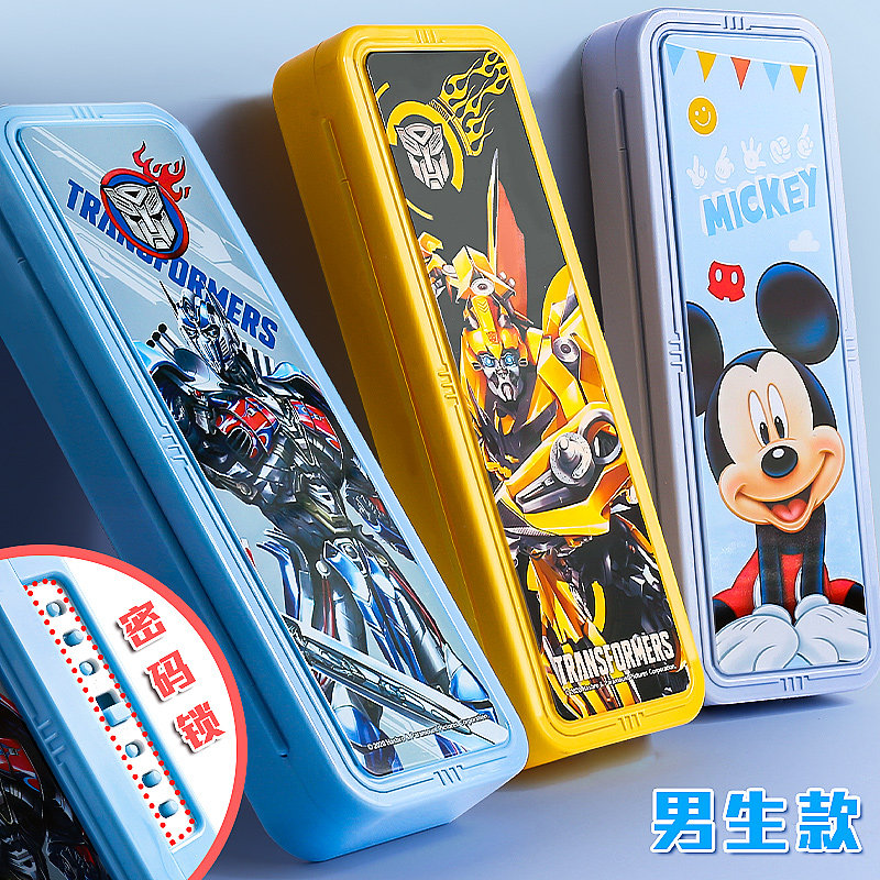 迪斯尼密码文具盒双层指纹小学生网红铅笔盒女幼儿园小学生一年级儿童带锁学霸多功能男孩男童笔盒网红塑料