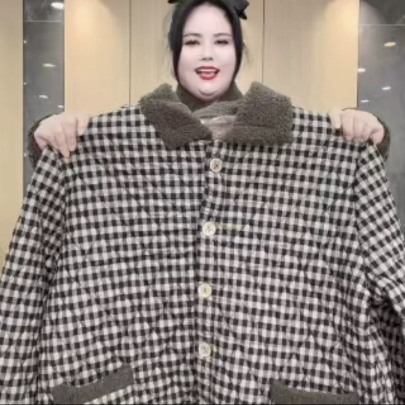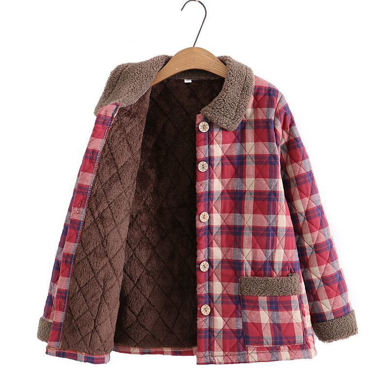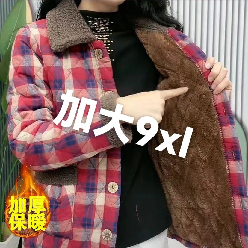 300斤加大码加绒加厚妈妈棉袄中老年格子棉衣洋气时尚保暖棉服