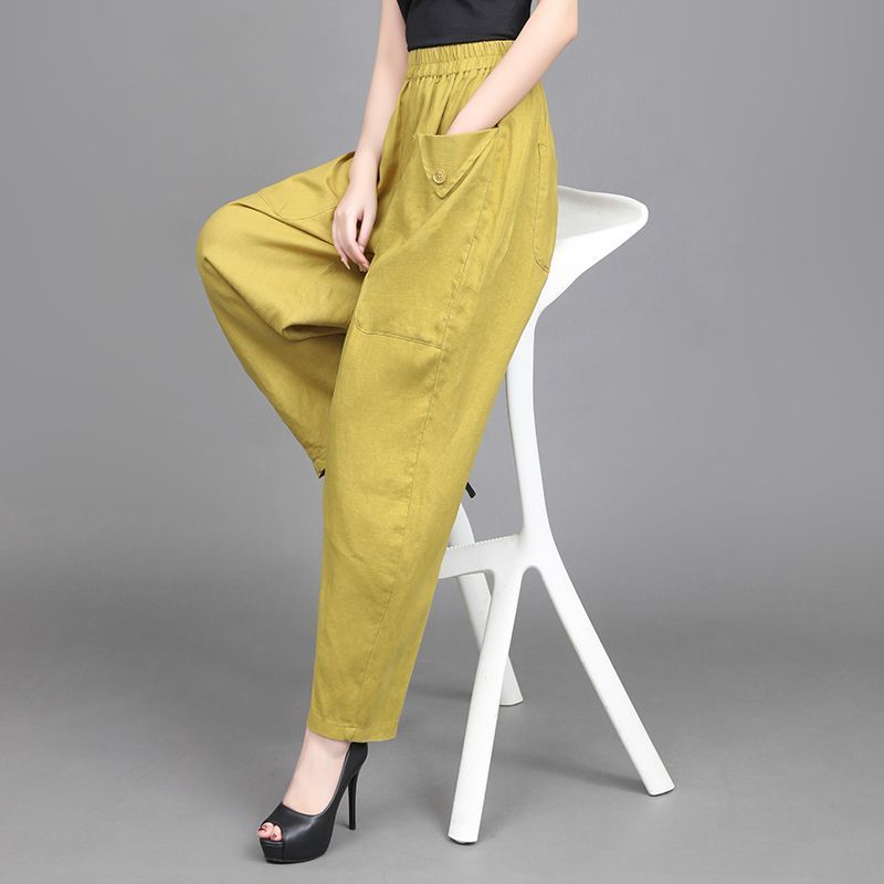 2025夏季新款女裤子垂感高腰休闲裤九分宽松罗卜裤灯笼裤哈伦裤女