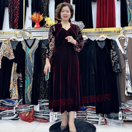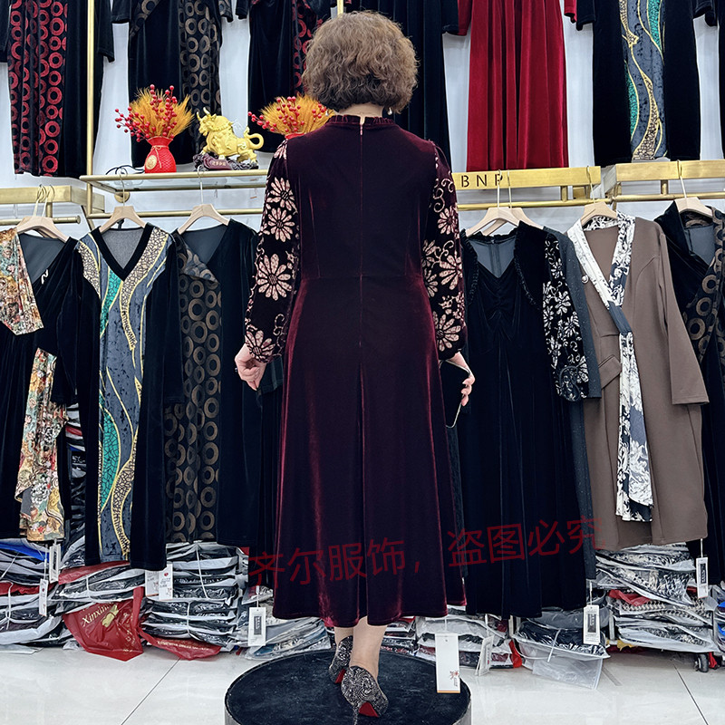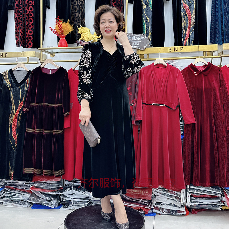 真丝绒连衣裙高端2024秋季新款高端奢华洋气阔太太大码宽松气质裙