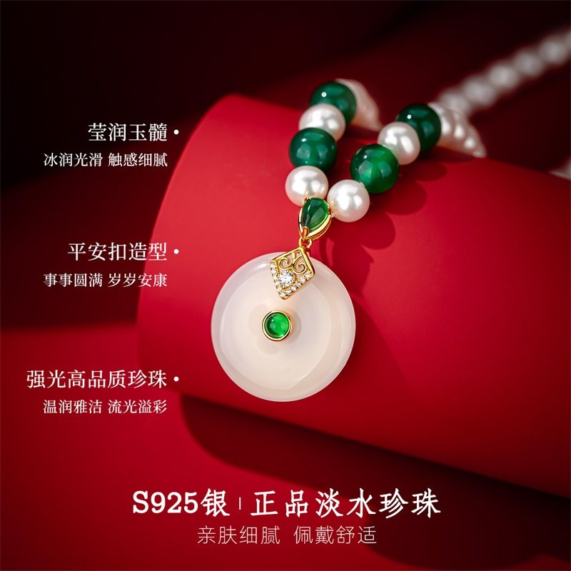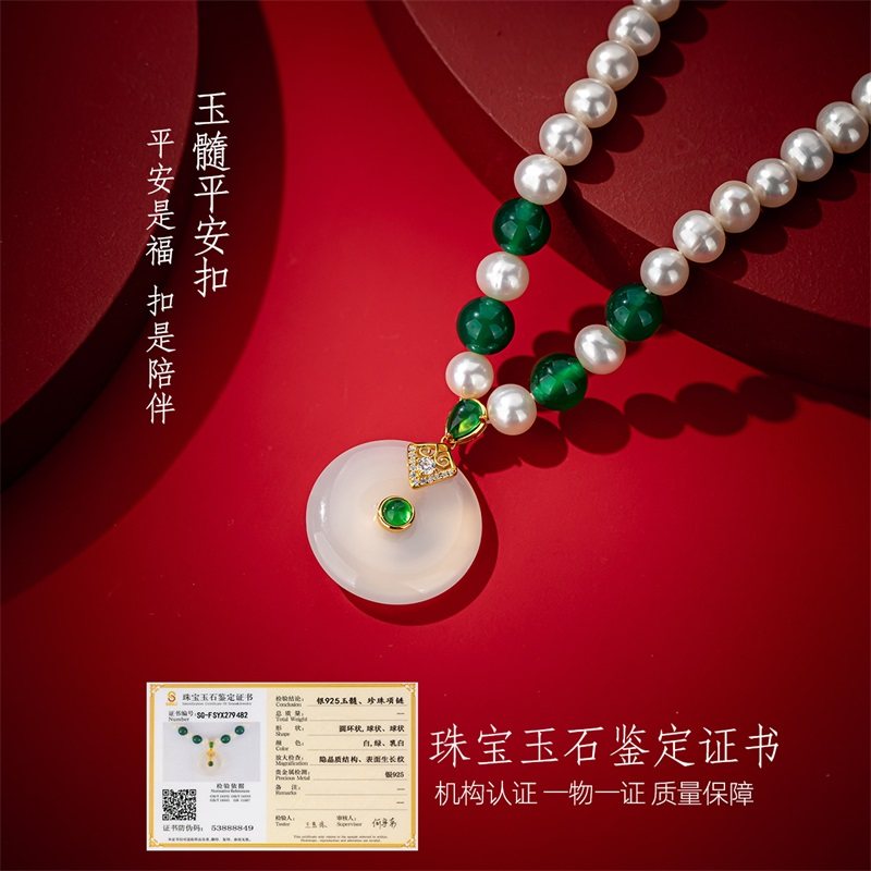 玉髓平安扣珍珠项链吊坠女颈链母亲节礼物送妈妈长辈奶奶生日首饰
