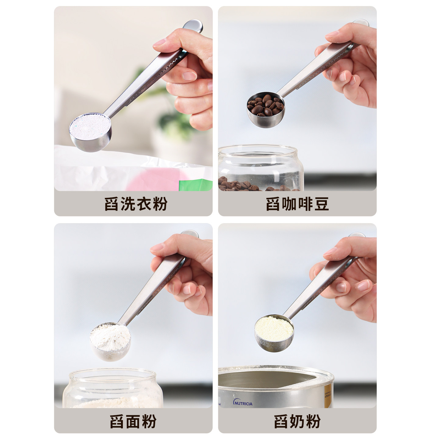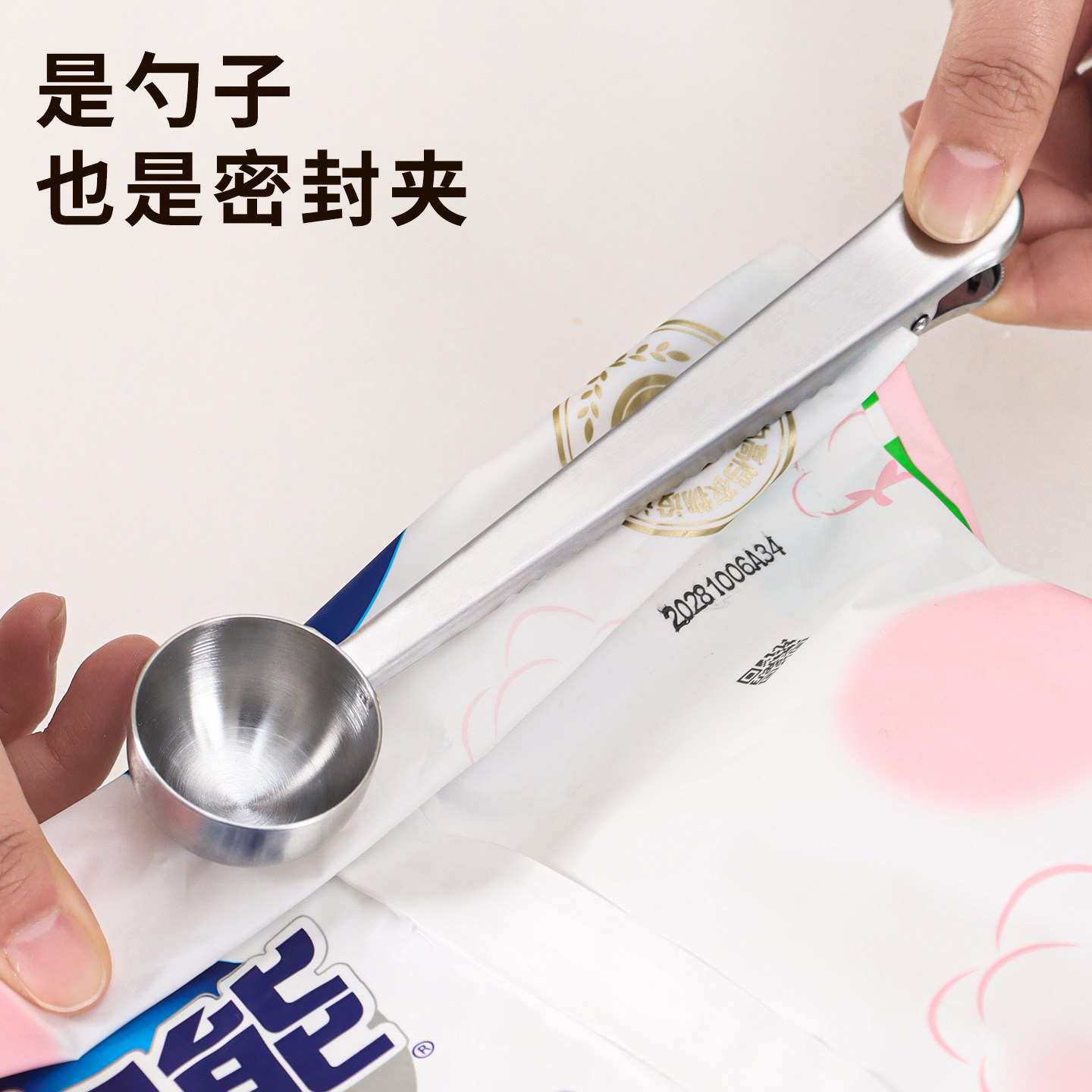 日本洗衣粉专用不锈钢量勺子封口夹多功能家用密封长柄计量咖啡豆
