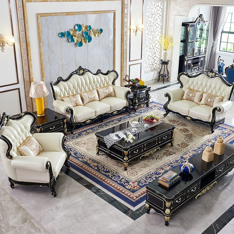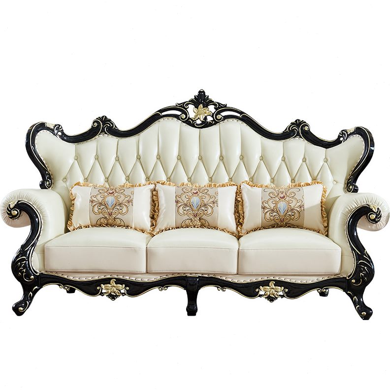 123欧式实木沙发整装檀色人艺黑精品雕刻皮组合客厅家具双人单人