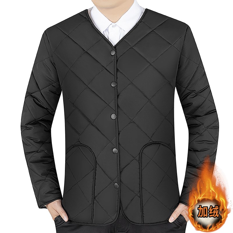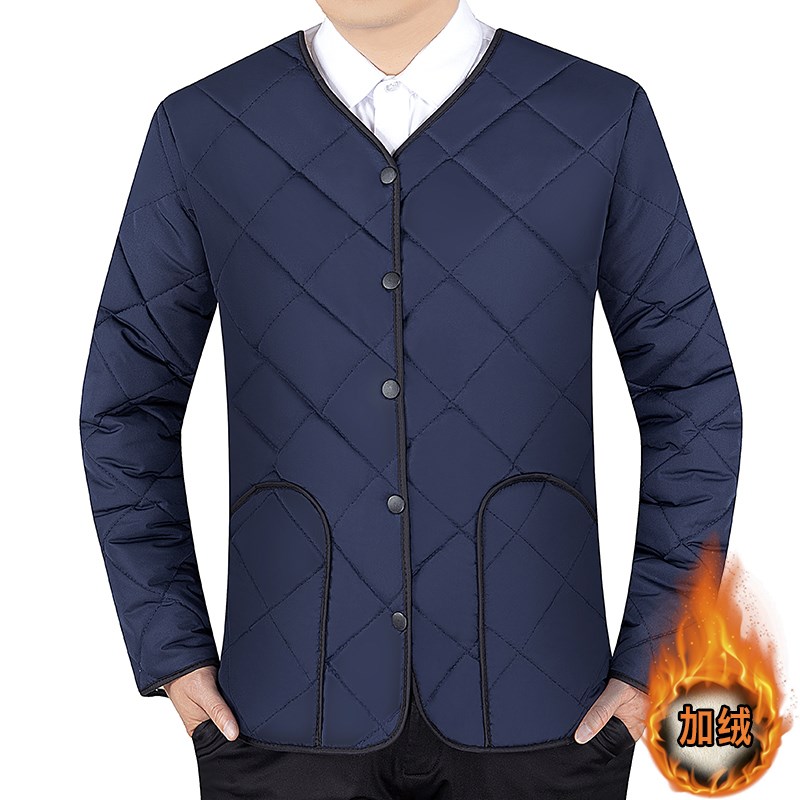 男士加绒棉服秋冬短款保暖内衣中老年加厚棉内胆爸爸装长袖内外穿